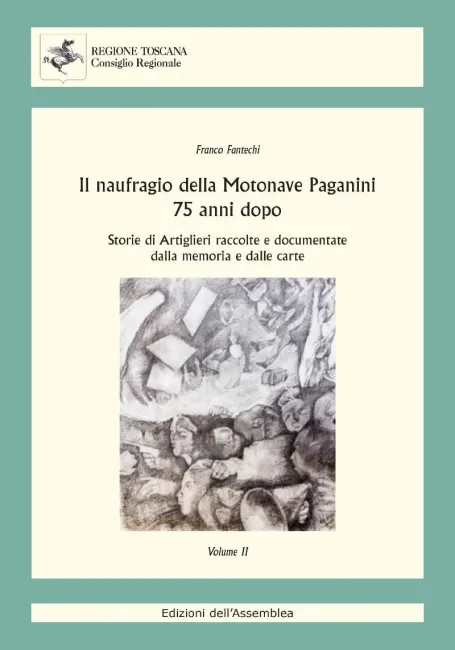 Il naufragio della Motonave Paganini 75 anni dopo : storie di artiglieri raccolte e documentate dalla memoria e dalle carte / Franco Fantechi ; [presentazioni di Eugenio Giani, Ilaria Belli, RoccoViglietta, Antonino Zarcone e Raimondo Perodi Ginanni]. – Secondo volume. - Firenze : Consiglio regionale della Toscana, 2019 ((In testa al front.: Associazione nazionale artiglieri d’Italia. Sezione provinciale di Firenze. 41. Rgt. a D.f. “Firenze” M.A.V.M. 1. Fantechi, Franco 2. Giani, Eugenio 3. Belli, Ilaria 4. Viglietta, Rocco 5. Zarcone, Antonino 6. Perodi Ginanni, Raimondo 7. Associazione nazionale artiglieri d’Italia. Sezione provinciale di Firenze 41. Rgt. a D.f. “Firenze” M.A.V.M. 910.916385 Nave Paganini – Naufragio – 1940